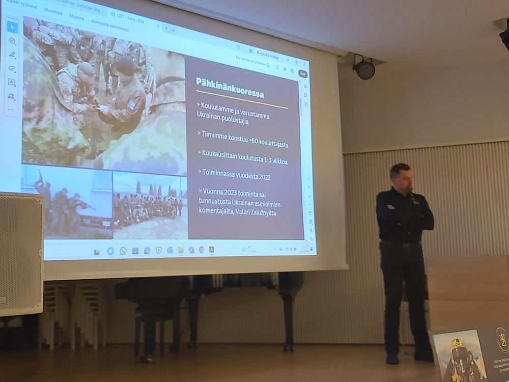 Yleishyödyllinen yhdistys Lion Defence Team järjesti kaksiosaisen luentotilaisuuden maanantaina 1.12.2025 Seinäjoen Apila kirjaston Jaaksi-salissa. Ensimmäisen osan luennosta piti yhdistyksen hallituksen jäsen, perustajajäsen Martti Mäki-Jouppila aiheena: Lion Defence Teamin koulutus- ja avustustoiminta Ukrainassa vuodesta 2022 ja havaintojen merkitys koulutustarpeisiin Suomessa.
