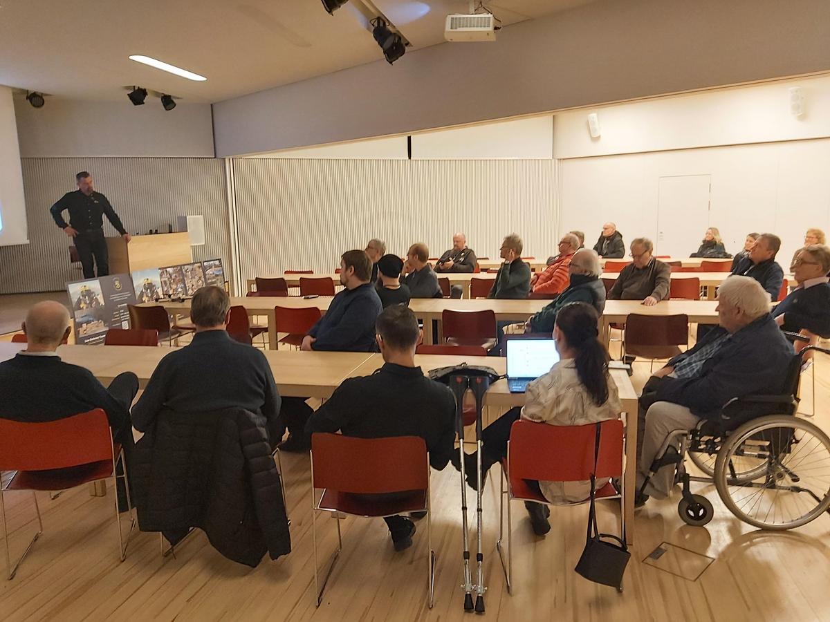 Hän kertoi reilulle 20 kiinnostuneelle kuulijalle sen toiminnasta tuoden esille kuinka yhdistys tukee hyökkäyksen kohteeksi joutunutta Ukrainaa järjestämällä koulutusta ja toimittamalla kaivattua materiaaliapua. Tiimi koostuu noin 60:stä vapaaehtoisesta kouluttajasta. Hän on itse tehnyt avustuskuljetus ja koulutusmatkoja Ukrainaan aluksi omin varoin ja nyt myöhemmin yhdistyksen toiminnan tukijoiden taloudellisella myötävaikutuksella. Sen enempää Suomen kuin Ukrainankaan puolustusvoimat tai valtiot eivät tue yhdistyksen toimintaa millään tavoin.