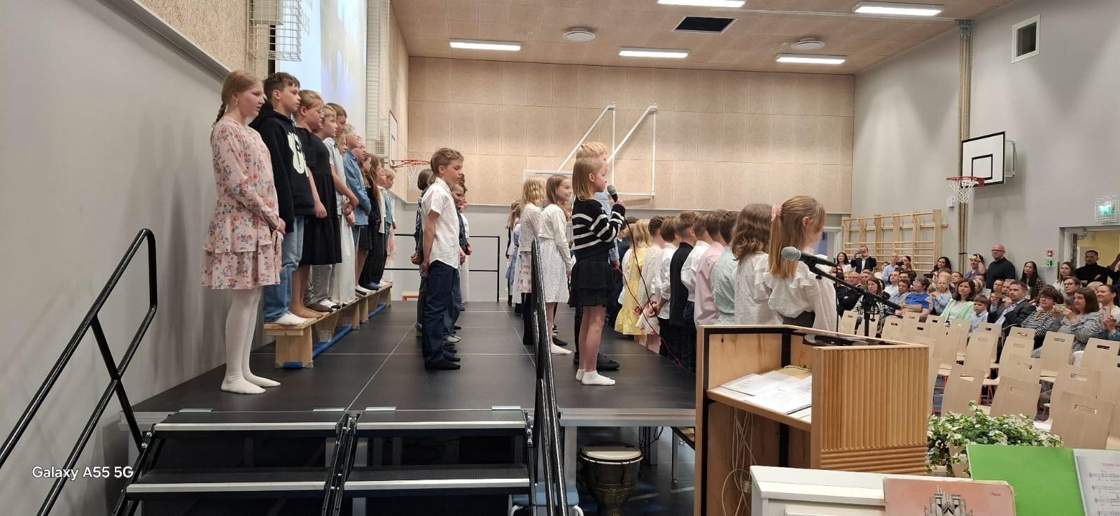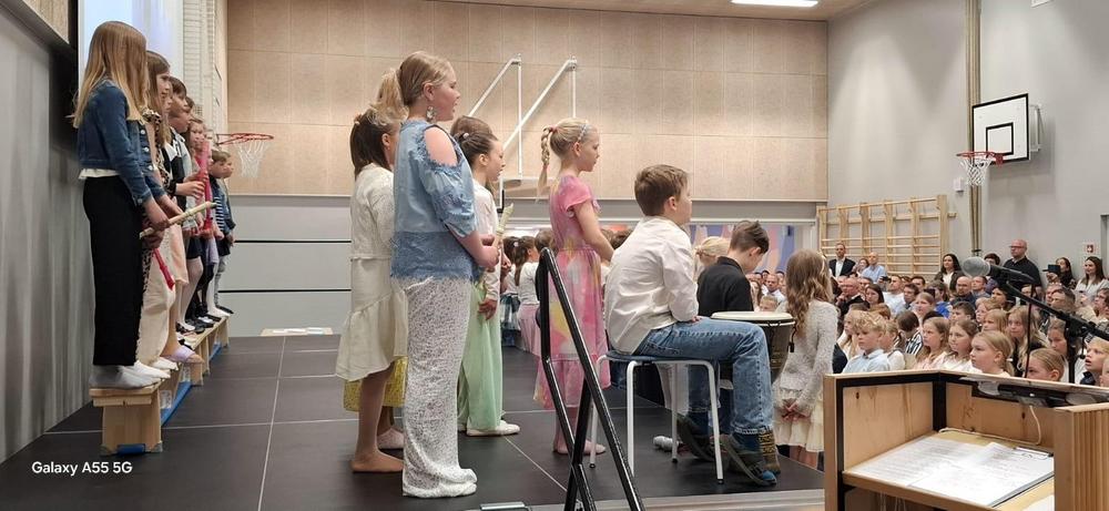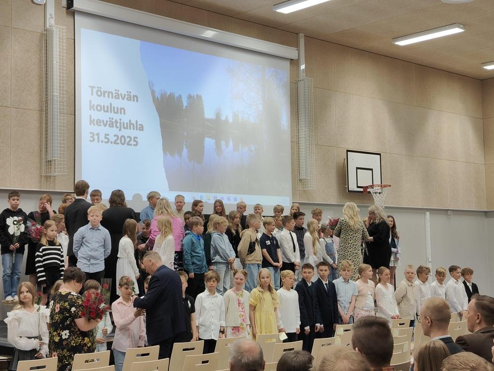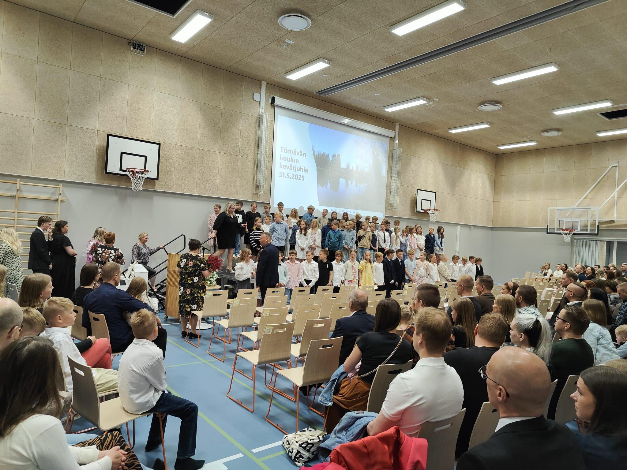 Törnävän uuden koulurakennuksen upea, valoisa juhlasali oli täynnä oppilaita, opettajia, vanhempia ja isovanhempia. Tunnelma oli tutun lämmin ja haikea. Rehtori piti koskettavan puheen, luokista yhdet oppilaat kiitospuheen, 4-luokkalaiset jäähyväistervehdyksen. Jaettiin HYMY-patsaat ja Reilun kaverin-stipendit, opettajat ruudun kullekin oppilaalleen "Raise me up"-biisin soidessa (kts.video) ja lopuksi kaikki lauloimme syvältä muistista ja muistoista sen oikean "Suvivirren".